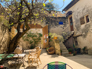 Vijf voor twaalf, tijd voor aperitief. Grignan is een aaneenschakeling van bistro's, cafƩ's en restaurants. Naar correcte gewoonte mogen we niet overal gaan zitten, wanneer we alleen maar wijn willen slurpen. We doen twee terrassen na elkaar, omdat we niet uitgebabbeld raken. En gewoon omdat het kan. De terugrit verloopt gestructureerder. Ik blijf me verbazen over de bijzondere schoonheid van de streek : het lijkt alsof iemand er met liefde voor elk dorp met een poetsdoek over is gegaan.