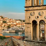 Ik heb emmers zweet in mij, zoveel poriƫn waarlangs parels in fijne stralen ontsnappen. We zetten de ene stap voor de andere. Vijftig graden hangen op onze schouders. We draaien de laatste bocht om en bereiken de baai van Hvar, bloedmooi. Rode, witte, oude, kleine en luxe boten dobberend op het azuurblauwe water. We wandelen voorbij twee restaurants en beslissen dat nummer drie het zal worden. Verder dragen onze benen niet meer. Vanaf deze kant van de baai is het zicht op de Riva, het eeuwenoude theatergebouw en de haven adembenemend. Waarom zouden we ons verder slepen. De door Natali aanbevolen restaurants zijn voor een volgende keer.